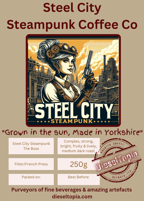 Welcome to our Steampunk-themed craft roasted coffee and artisan tea blend company. We specialise in sourcing the finest teas and coffees from around the world. We are proudly based in the heart of Yorkshire but can supply worldwide. Our themed teas and coffees are carefully crafted to create unique products that will transport you to another time and place. Not content to stop there, we also source complimentary products, showcasing the best of Steampunk & Alternative design. Whether you're a caffeine connoisseur or a tea aficionado, or just love Steampunk, we have something for everyone. So come and join us on a journey of taste and discovery, and experience the best of Yorkshire.
